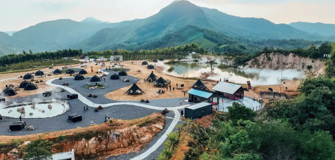 Anji Chunfeng Valley Luxury Campsite In Spring Breeze Valley, you can stroll through a garden full of flowers, savoring the poetic beauty of nature, which is truly refreshing and uplifting.