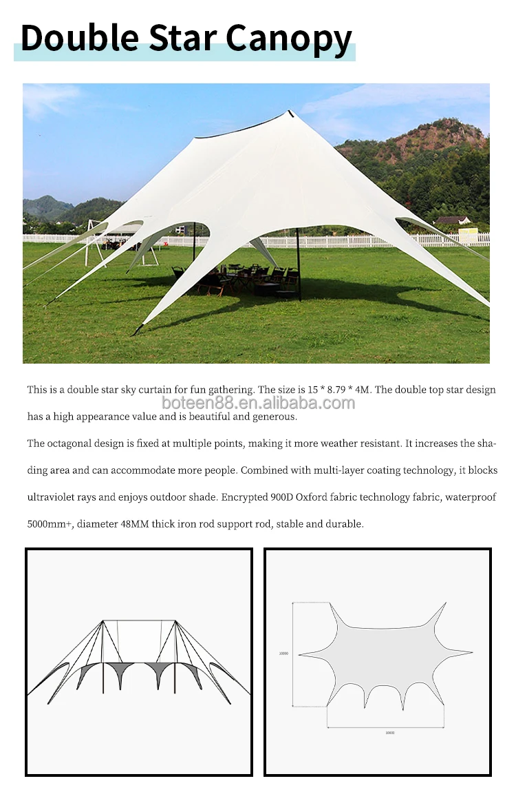 BOTEEN Camping Zelt 900D Oxford Antibiosis Double Star Canopy Outdoor Safari Tents All Season With Sanitairy