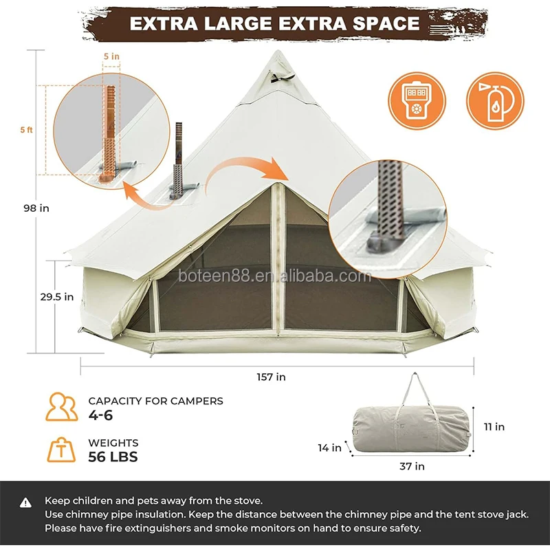 BOTEEN Luxury Glamping Waterproof Breathable Tents Canvas Bell Tent for Camping