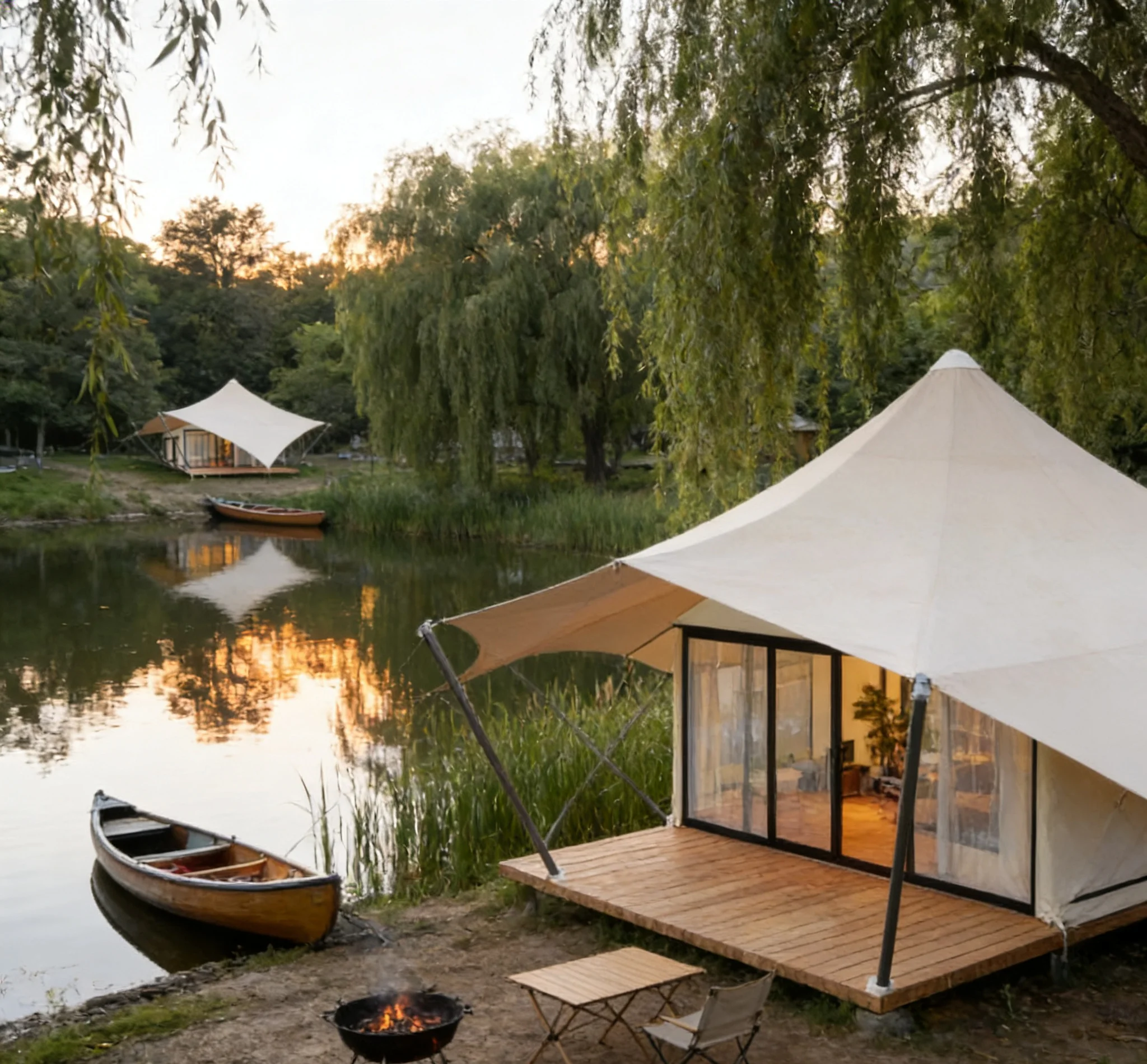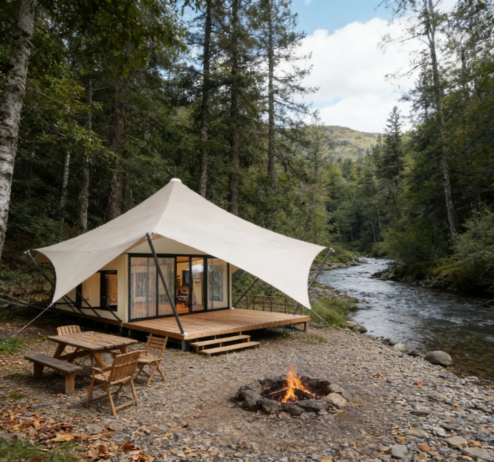 BOTEEN Outdoor Waterproof Luxury Canvas Safari Tent House for Vacation and Hotel
