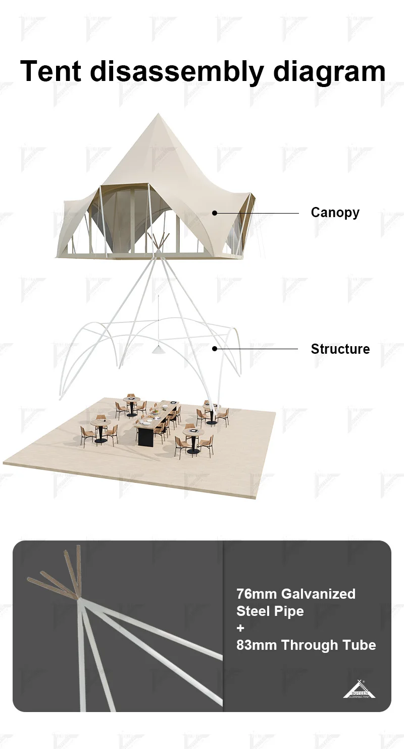 Custom Outdoor Tent Tipi Indian Large Luxury Glamping Waterproof Durable Teepee Wedding Party Tent for Event Festival Dining