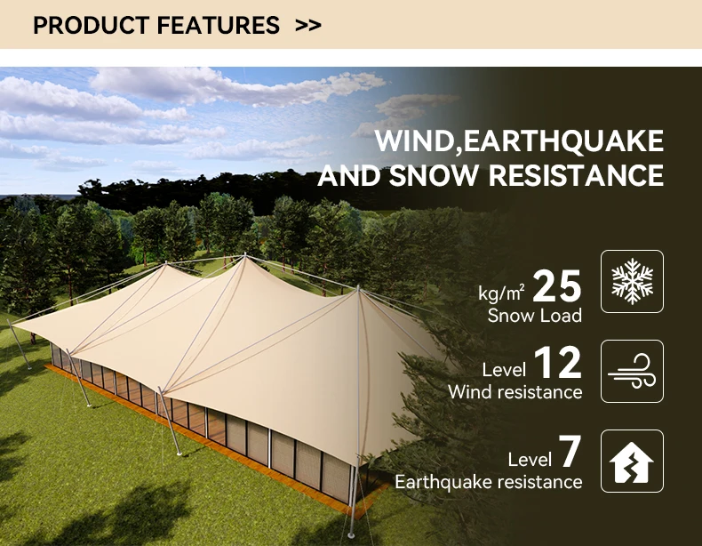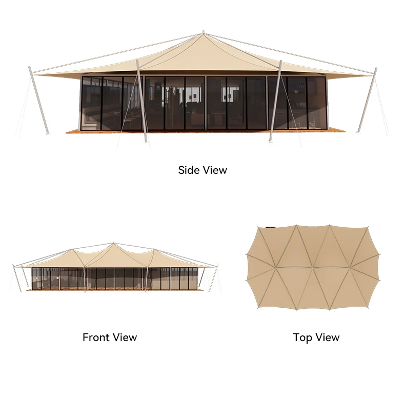 You're viewing: Glamping Safari Cot Tent Prefab Steel Houses with PVC Bathroom for Family Hotel Lodge Stay in Nature $225.00