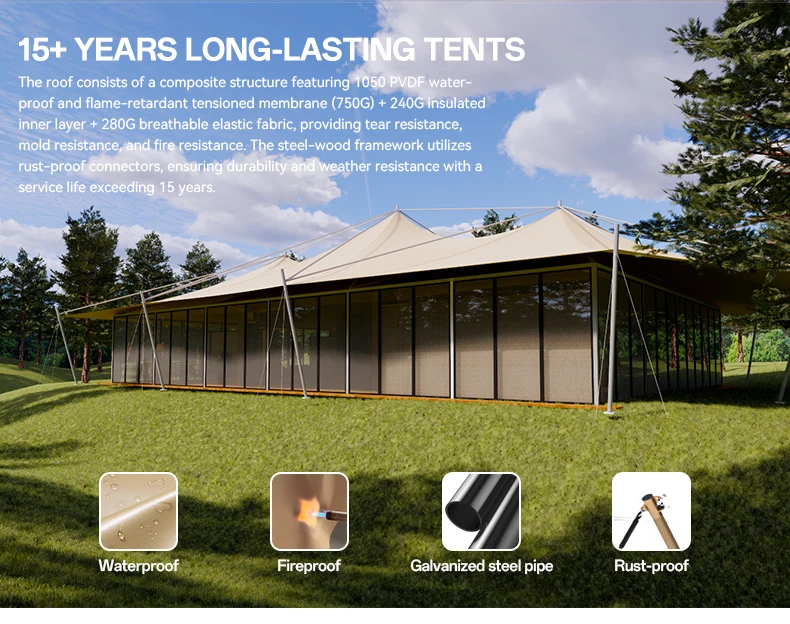 Glamping Safari Cot Tent Prefab Steel Houses with PVC Bathroom for Family Hotel Lodge Stay in Nature