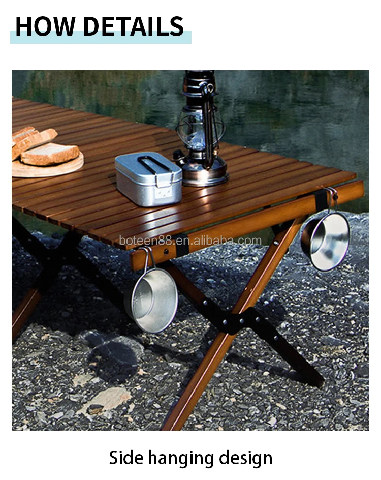 High Quality Portable Wood Folding Table Outdoor Camping Dining Rustic Thickened Egg Roll Aluminum Metal Includes Picnic Storage