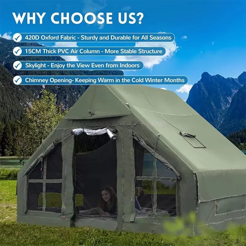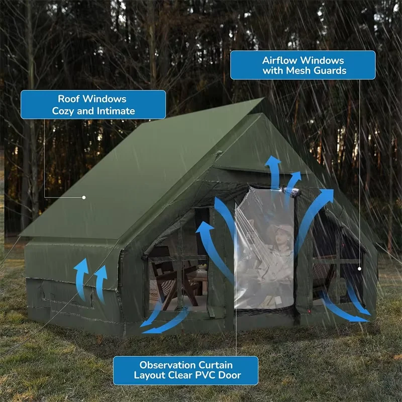 House Shape Outdoor Camping Air Tent Inflatable Glamping Tent with Pump Travel Hiking Ridding Tent