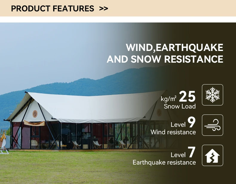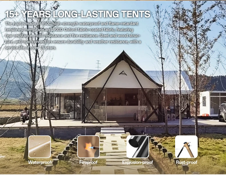 Large Scenic Hotel Tent Automatische Zelt Safari Tents All Season Easy to Set Up Outdoor lodges With Sanitairy Specification