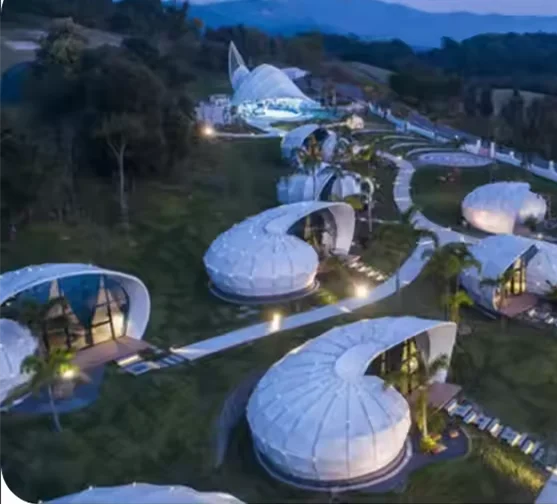 Large Sea Shell Glamping Hotel House Snail Shape Hotel Tent PVDF Waterproof and Flame Retardant Tension Film Tent
