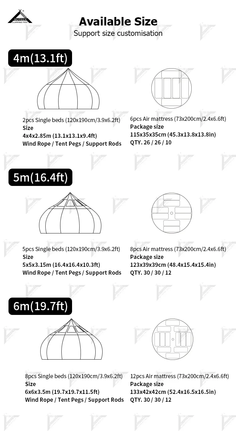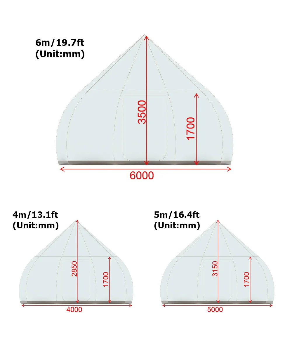 | Total measurement | 4x4x2.85 meters(13.1×13.1×9.4ft) |