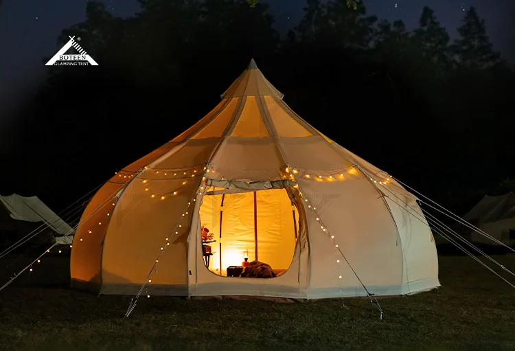 Luxury Waterproof Tent Series: Home Camping Canvas Mongolian Bag Water Drop Starry Sky Lotus Tent, Outdoor Luxury Camping
