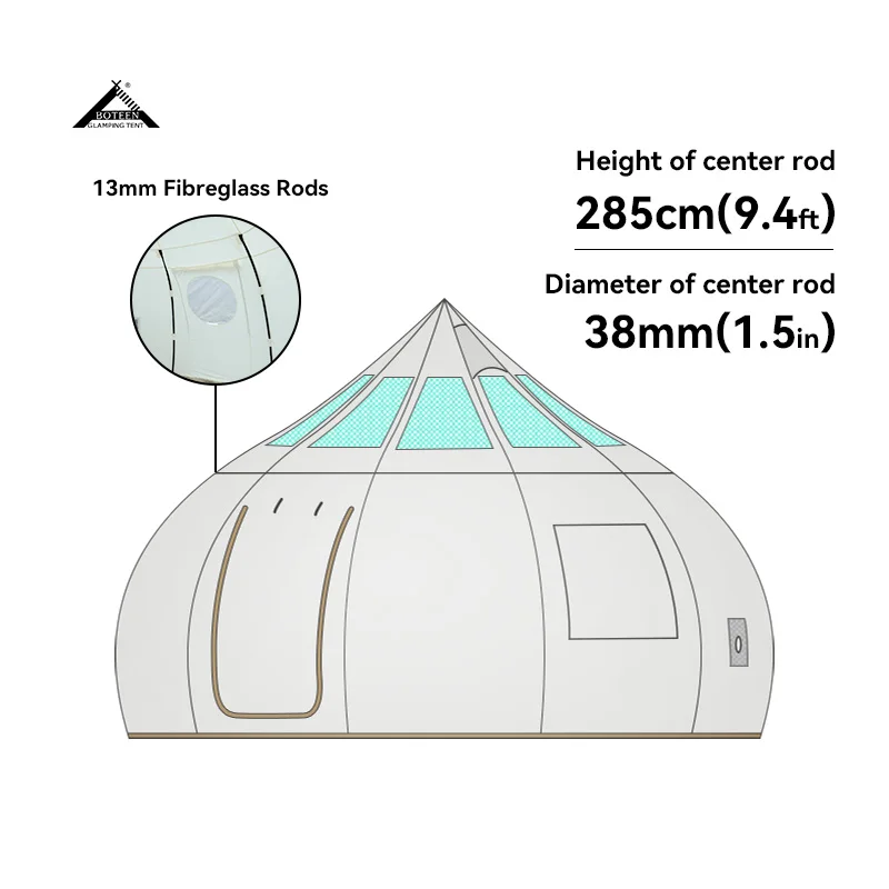 | Product Standard Configuration | Yurt, poles, wind ropes, tent pegs and installation instruction |