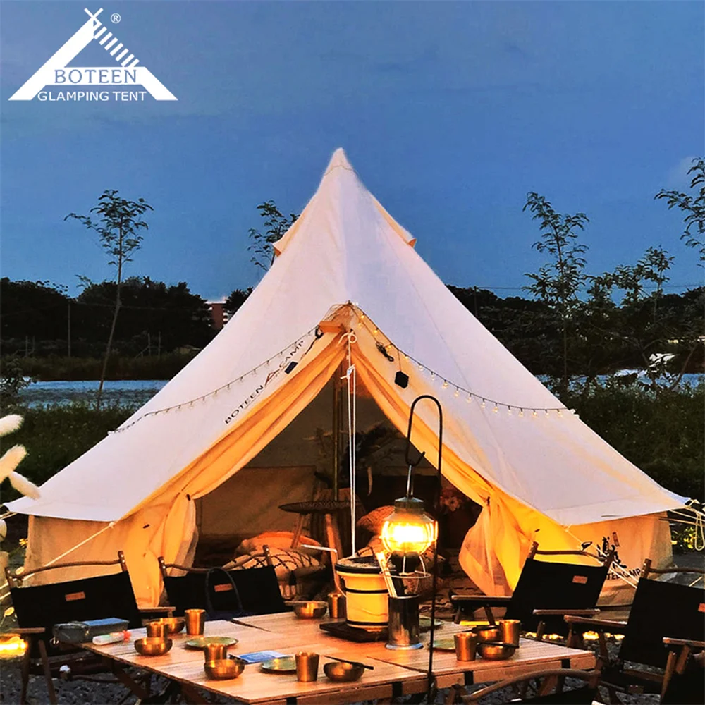 Outdoor 4 Season Tourist Waterproof Glamping Tent Luxury 3M 4M 5M 6M Cotton Oxford Tent Canvas Mongolian Yurt Bell Camping Tent