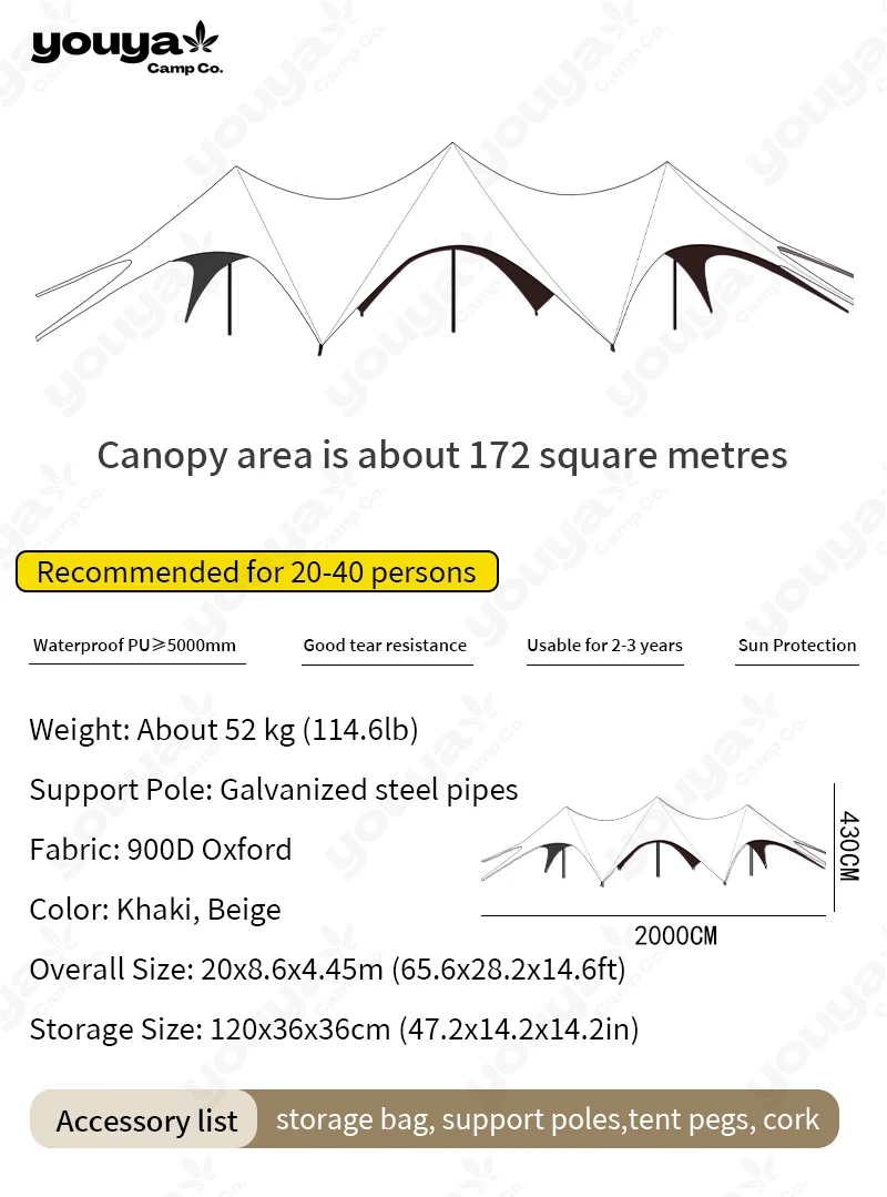 Outdoor Camping Tarp with Poles 20-40 People Portable Waterproof Survival Large Canopy Trade Show Tent for Party Picnic Wedding