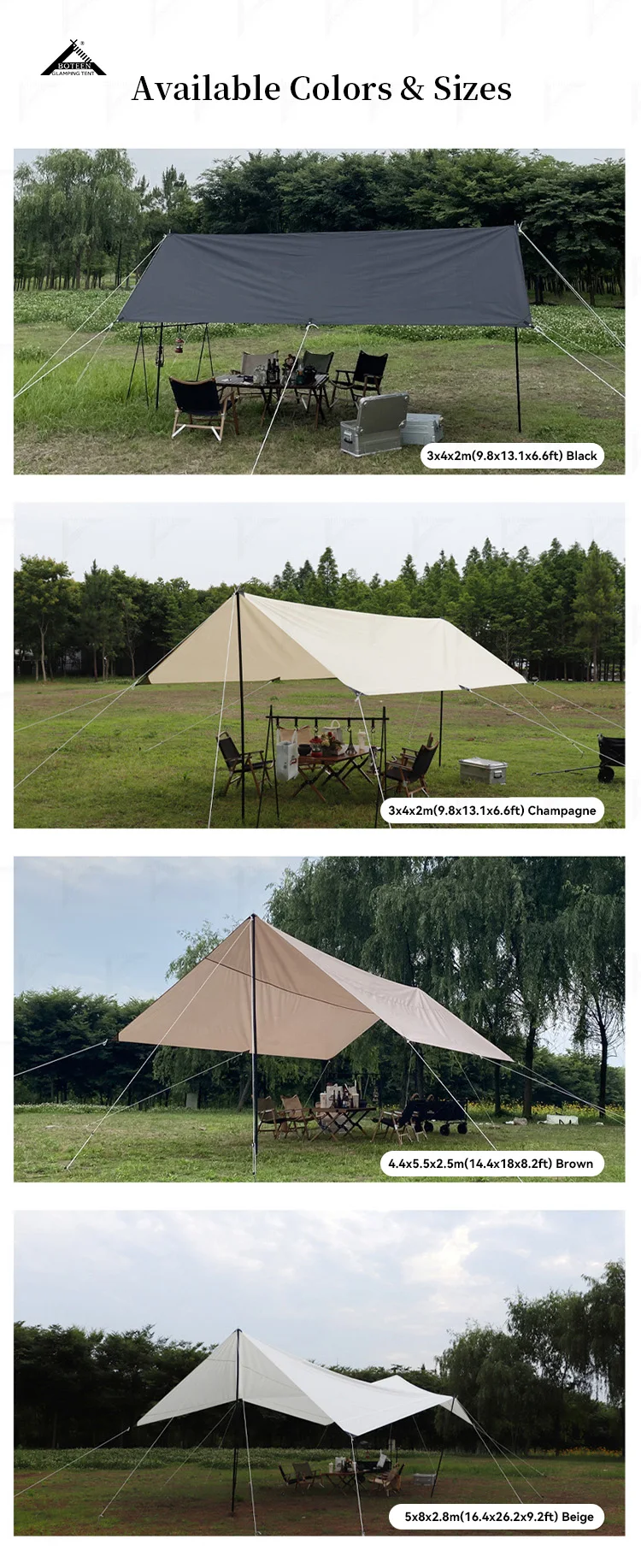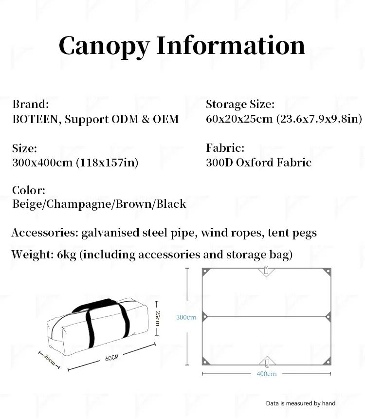 | Product Standard Configuration | Canopy, wind ropes, steel pipe, tent pegs |
