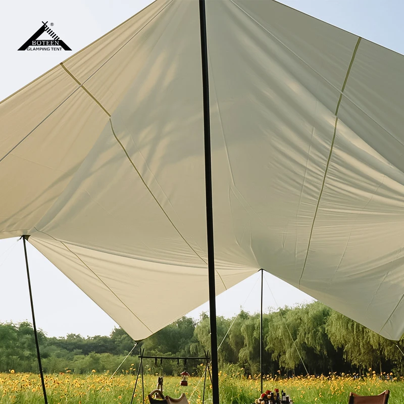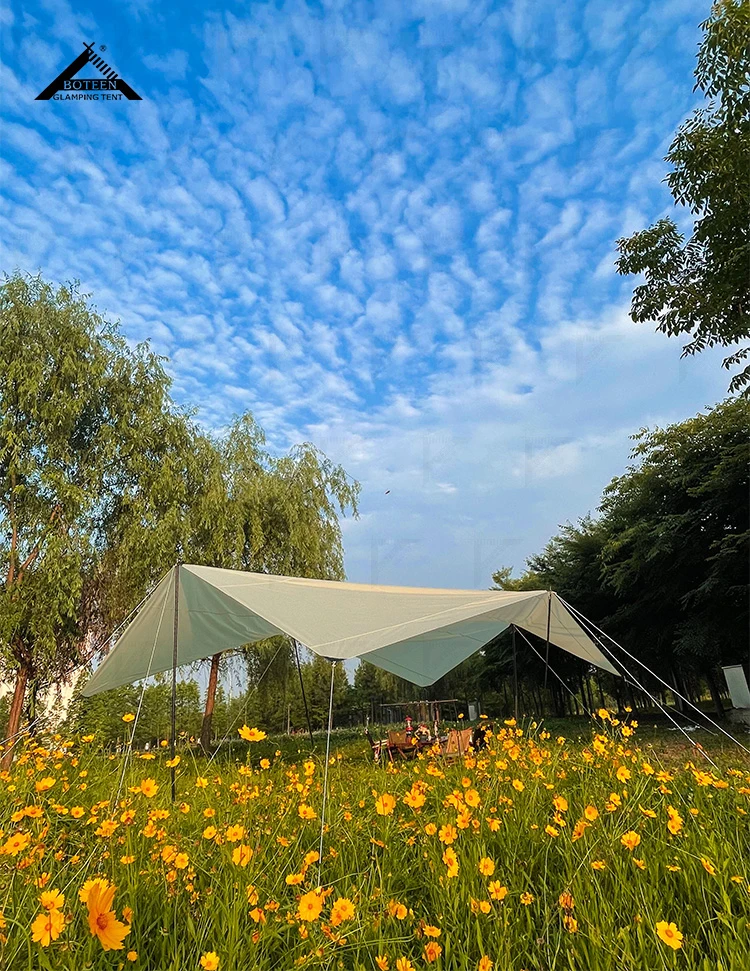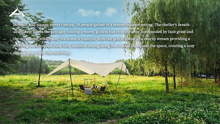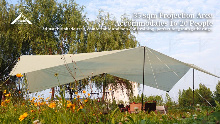 Outdoor Camping Tent Tarp with Pole Outdoor Portable Waterproof Rain Fly Hammock Tent Tarp Shelter for Party Picnic Backpacking