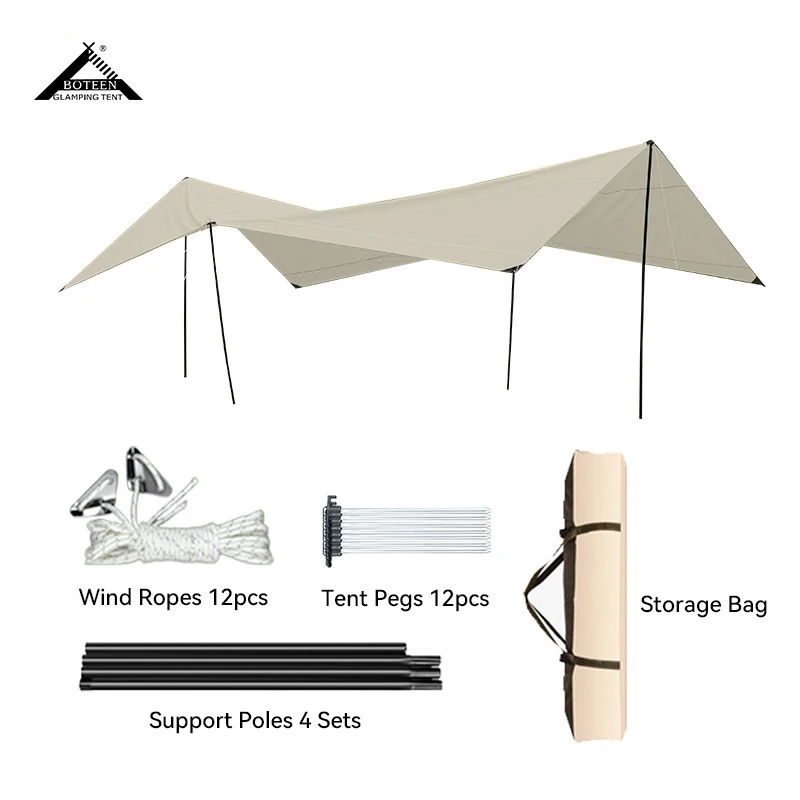 Product Standard Configuration Canopy, wind ropes, steel pipes, tent pegs