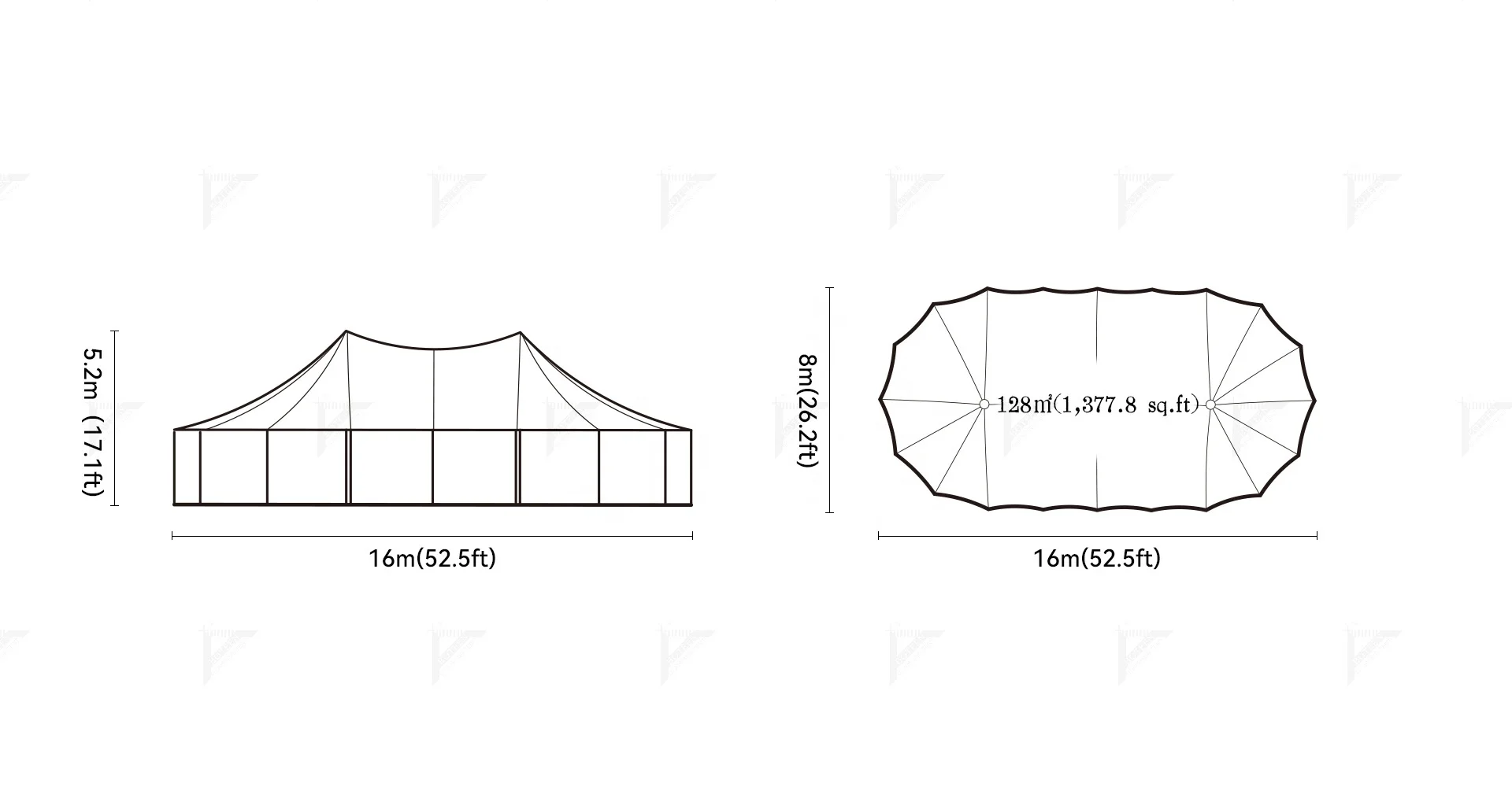 | Total measurement | 8*16*5.2m-10*20*6.5m-14*24*7.4mmeters |