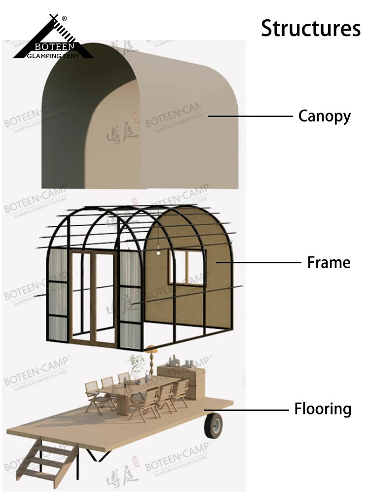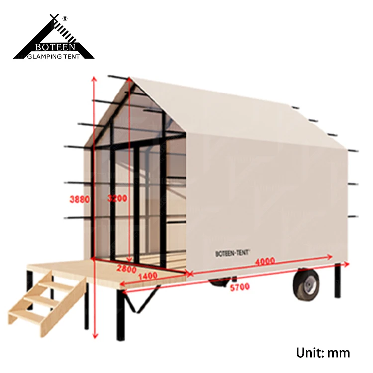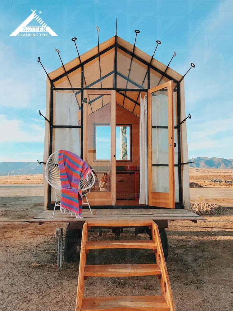 Stylish Custom Outdoor Glamping Tent with Wheels Waterproof Tented House Luxury Camping Safari Hotel Resort Tent for Travel