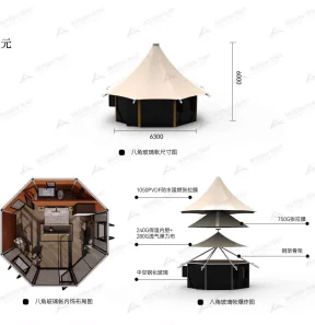 Ultra Luxury Hotel Resort Tent Membrane Structure Modern Style Double Layers High Fire Glass Outdoor Glamping Tent Sidewall