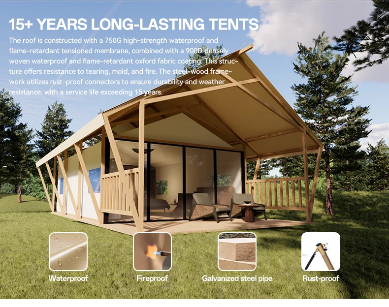 Wooden Outdoor Glamping Prairie Glamping Tent Luxury Safari Desert Hotel Resort House Tents