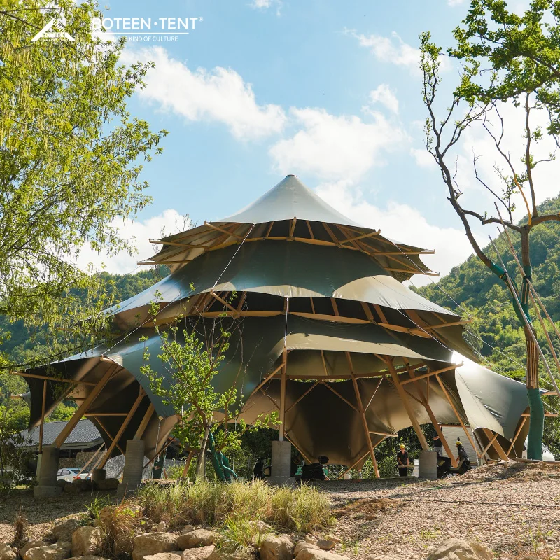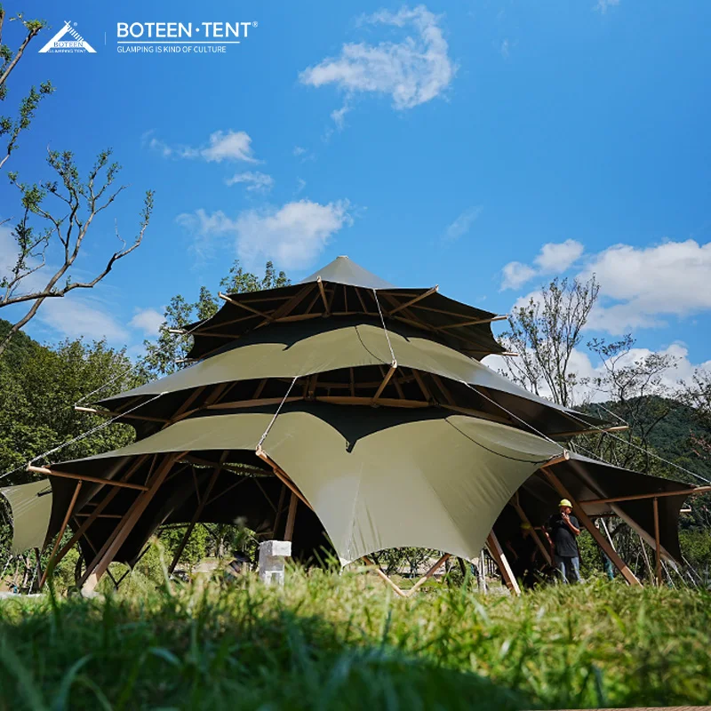 Direct Manufacturer Lotus Bell Tent 900D Oxford 3000mm Waterproof 9.4ft H 1.5in Dia 13mm Fibreglass Rods Luxury Camping Tent