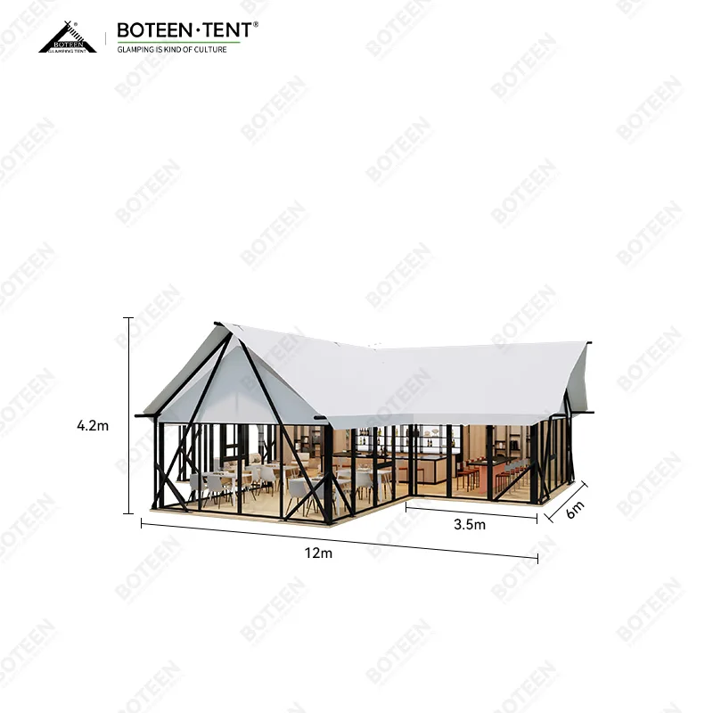 Luxury Double-Layer PVC Wooden Frame Aluminum Pole Safari House Shaped Straight Bracing Type for Outdoor Glamping Summer Resort